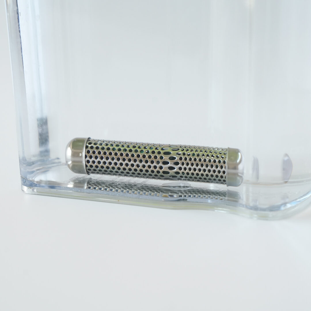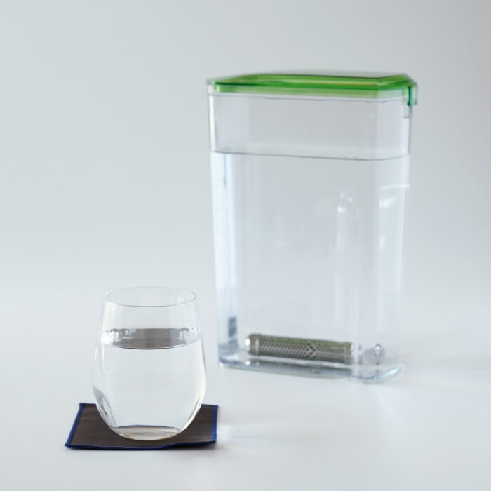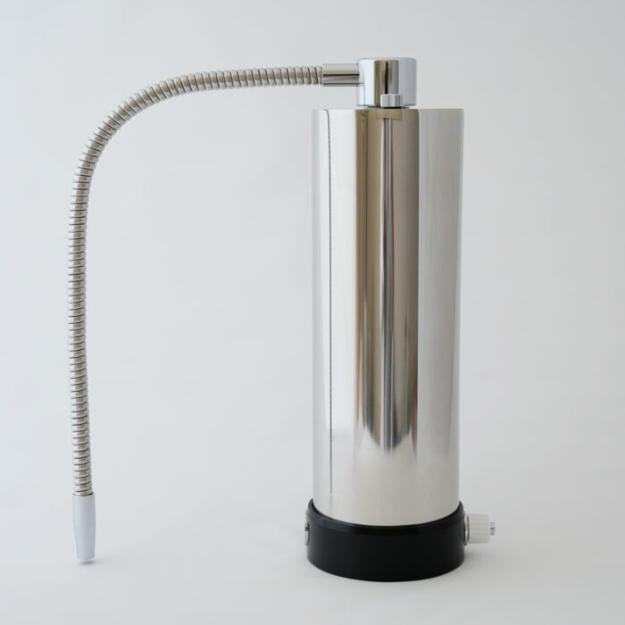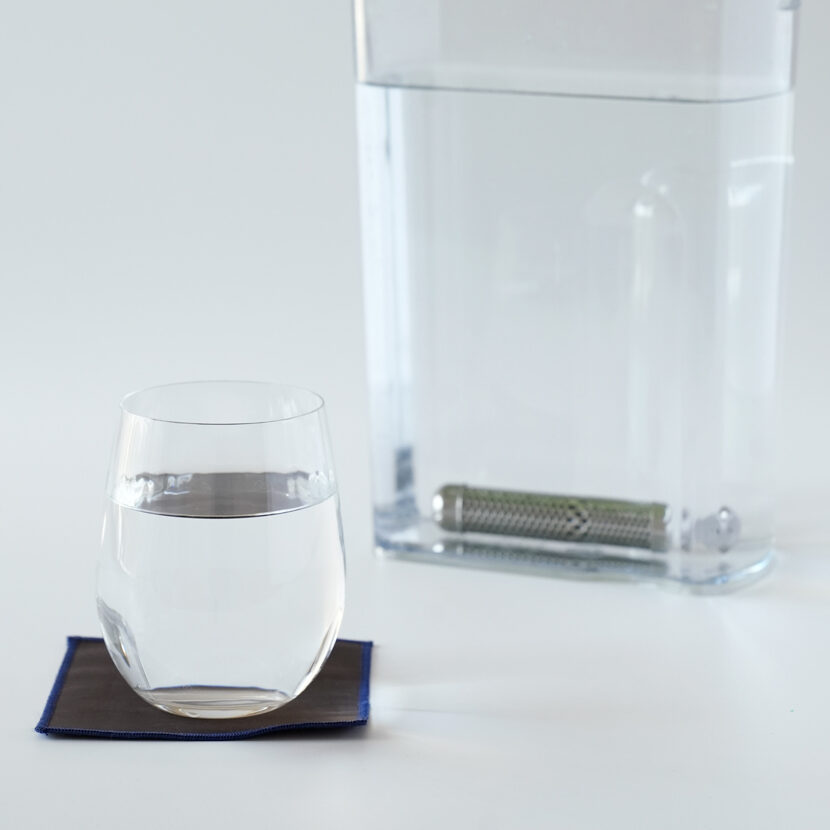 エレン鉱石と活性炭が搭載された卓上型浄水器*。塩素だけでなく、今、問題となっているPFASも0.02μ/l*まで除去できます。
