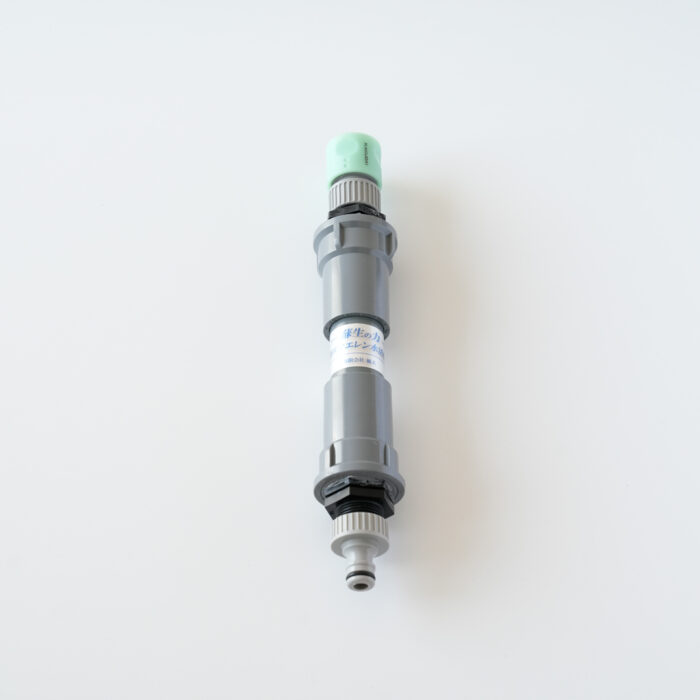 田んぼの水口に置いておくだけで、瞬時にエレン水になります。田んぼ以外にも、大容量の水やり時に、雨水タンクや井戸などに入れておいても構いません。