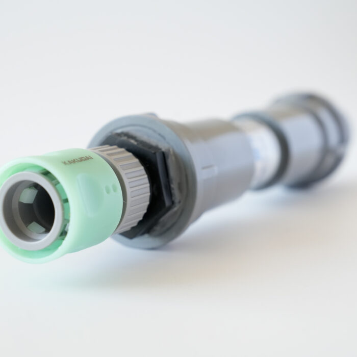 お庭の草花や家庭菜園、農業の散水に。散水ホースに取り付けるだけの簡単なワンタッチ設計。(緑色の部分にシャワーヘッドをカチッと装着。グレーの口にホースを取り付けます。水圧で外れないよう、さらにホース部分を針金やホース用バンドで固定されるとより安心です。)