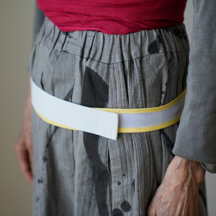 たすきで胸を開くと、肺にたくさんの酸素を取り込むことができます。姿勢も良くなり、血中の酸素濃度の上がる方が多いです。